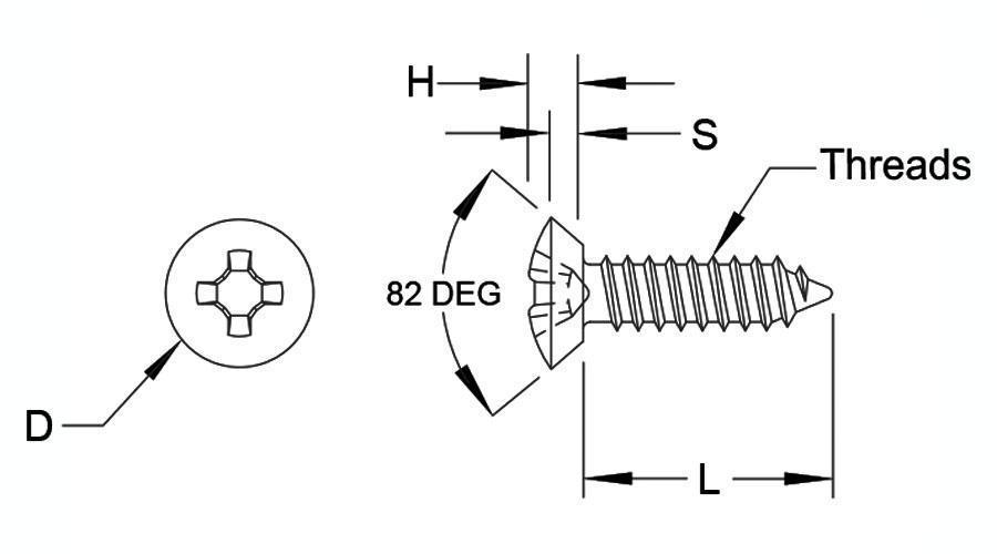 • Cabeça Plana de 82 graus